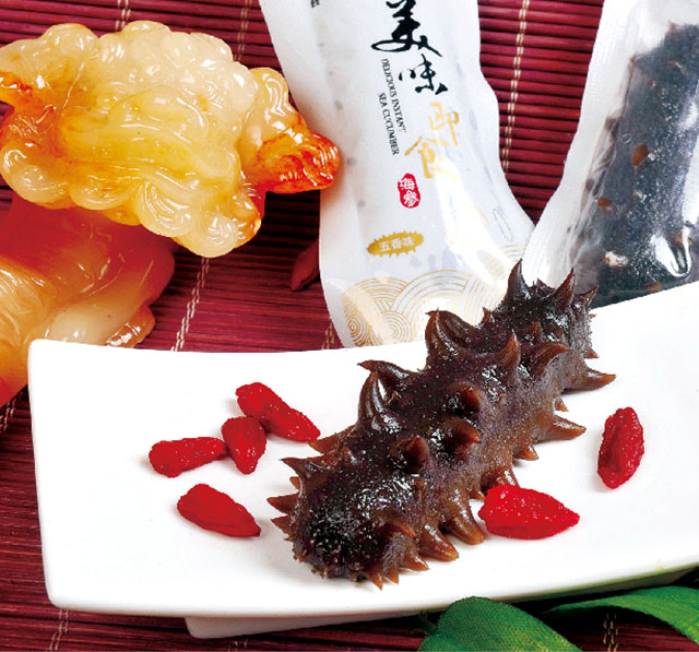 特邀G20杭州峰会餐饮组组长、杭帮菜掌门人胡忠英先生亲自秘制料汁配方。将精选的野生5年以上种参级辽参做为原料,经过低温低压缩水后,采用传统古法与料汁融合入味,口感柔韧,味道鲜美,不仅是滋补良品,更是珍馐美味。